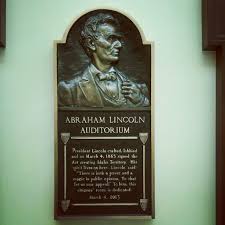 Part of the ceremonies included a renaming of the auditorium inside the state house after President Lincoln, complete with the installation of a handsome plaque which I’ve shown in the photo above. The relief on the plaque is based on a famous photo of Lincoln taken in 1860. On this plaque is a quote purported to come from Lincoln: “There is both a power and a magic in public opinion. To that let us now appeal.” Powerful words, but are they Lincoln’s?